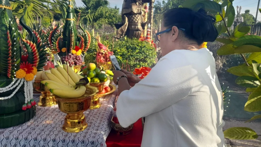 นางพเยาว์ ตุธรรม เผยว่า วันนี้ได้มาทำพิธีแก้บนเนื่องจากในงวดที่แล้ว ได้บนกับท้าวเวสสุวรรณขอให้ได้โชคลาภ หากโชคดีจะตั้งโต๊ะแก้บนถวายเครื่องไหว้ และบายศรี พร้อมกับถวายนางรำสาวสวยแห่งเกาะคำชะโนด พอโชคดีได้เฮในงวดที่ผ่านมา ก็ยังได้ขอโชคลาภจากท้าวเวสสุวรรณต่อในวันที่ 16 พฤศจิกายน