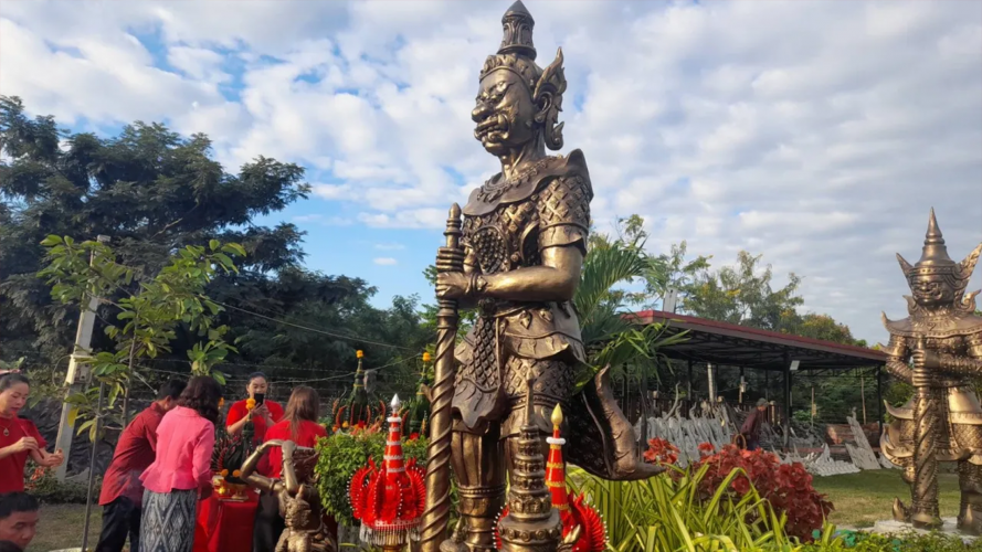 วันที่ 6 พฤศจิกายน 2567 ณ บริเวณด้านหน้าร้านปั้น ในบ้านหนองแปน ต.หนองเม็ก อ.หนองหาน จ.อุดรธานี พิธีบวงสรวงเพื่อแก้บนต่อหน้ารูปปั้นท้าวเวสสุวรรณ สูงประมาณ 2.80 เมตร