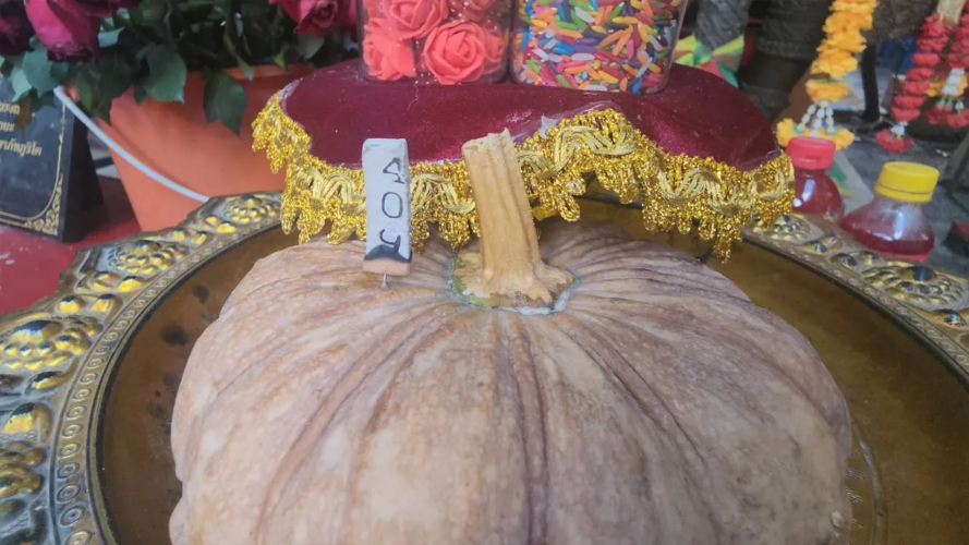 หลังจากเสร็จสิ้นได้กราบขอพร "ท้าวเวสสุวรรณ" บริเวณลานด้านหน้าทางขึ้นศาลาการเปรียญ จุดธูปขอพร อธิษฐานขอพรขอโชคขอลาภ เพื่อความเป็นสิริมงคล และนำธูปมงคลปักไว้บน ฟักทอง จุดธูปปรากฎเลข 4 - 0 - 9